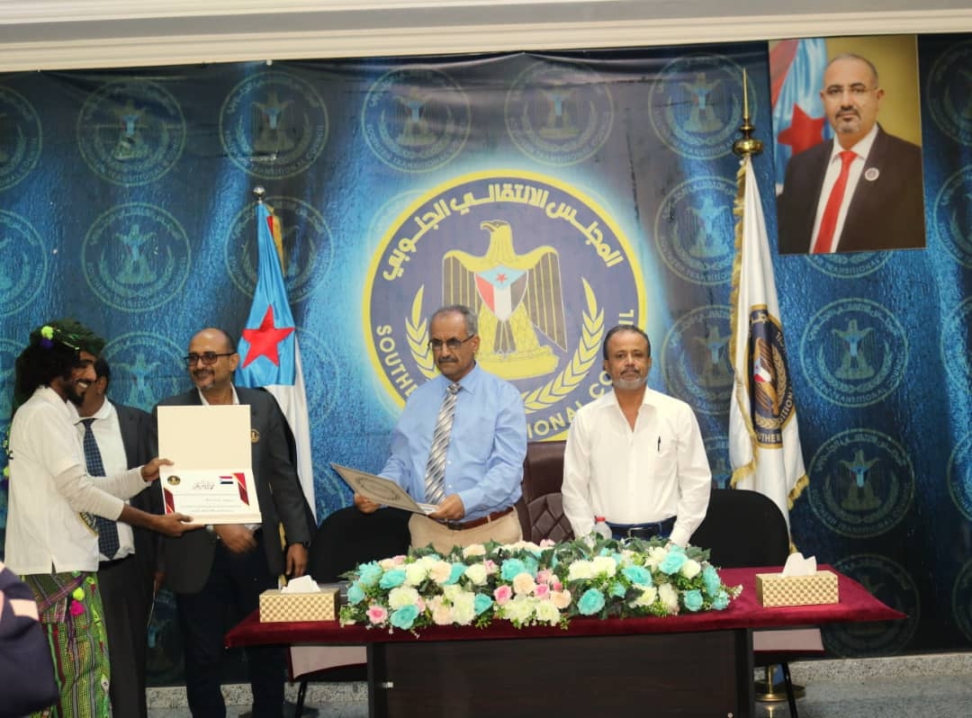 وبدوره أوضح الأستاذ عمر عقيل، رئيس الدائرة الثقافية في الأمانة العامة لهيئة رئاسة المجلس الانتقالي، أن هذا التكريم من قبل مساعد الامين العام لهيئة رئاسة المجلس الانتقالي الجنوبي للملتقى الجنوبي، يأتي تشجيعا وتقديرا للدور المتميز الذي قدمه الملتقى الجنوبي والمتمثل في تقديمه لأوبريت "إرادة شعب"، والذي لخص النضال الوطني الجنوبي في صورة فنية مبدعة.