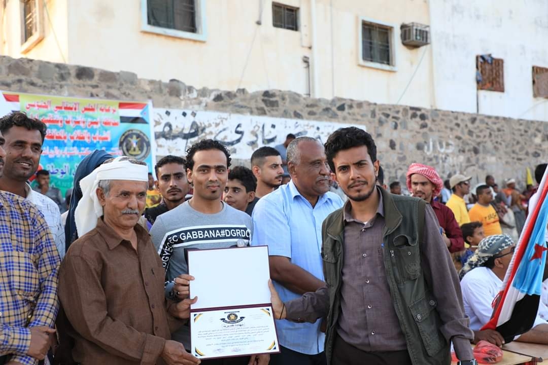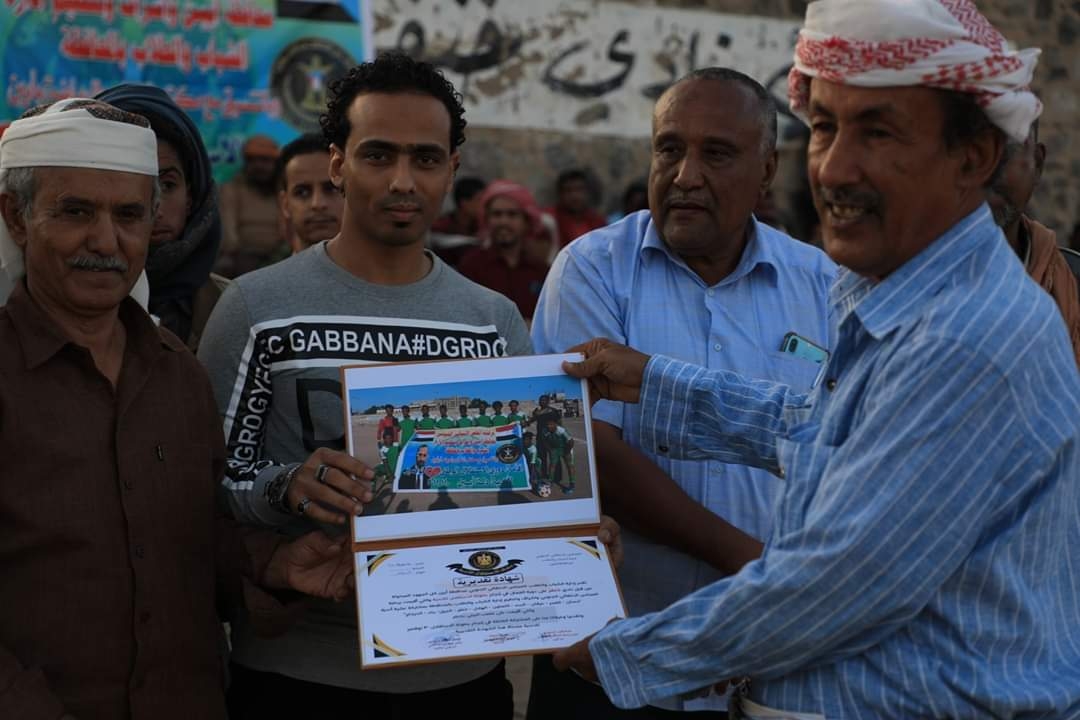 وعقب انتهاء المباراة، قام العميد عبدالله أحمد الحوتري، رئيس القيادة المحلية للمجلس الانتقالي بمحافظة أبين، بمعية مؤمن السقاف، رئيس دائرة الشباب والطلاب في الأمانة العامة لهيئة رئاسة المجلس الانتقالي، والكابتن أحمد صالح الراعي مدير عام مكتب الشباب والرياضة بمحافظة أبين، والأستاذ فيصل باعرفة رئيس انتقالي خنفر، ونجوم الزمن الجميل للكرة الجنوبية، الكباتن عبدالله مكيش، عمر البارك، خالد عفارة، وهاني عبدالكريم، بتسليم كأس البطولة والميداليات الذهبية للاعبي فريق حسّان، وكأس الوصيف والميداليات الفضية للاعبي فريق عرفان.