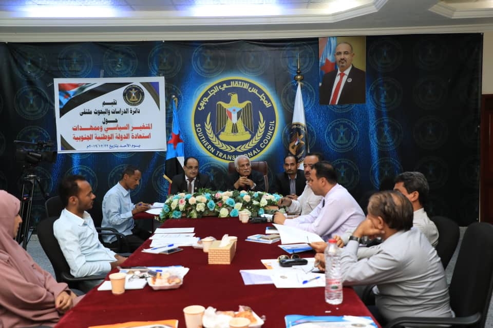أقامت دائرة الدراسات والبحوث في الأمانة العامة لهيئة رئاسة المجلس الانتقالي الجنوبي، اليوم الأحد، ملتقى حول "المتغير السياسي و ممهدات إستعادة الدولة الوطنية الجنوبية".