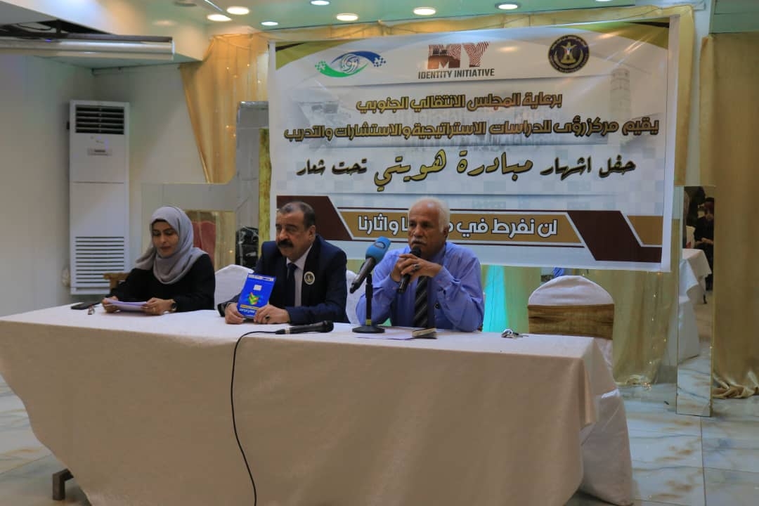 شارك اللواء أحمد سعيد بن بريك، رئيس الجمعية الوطنية للمجلس الانتقالي، في حفل إشهار مبادرة "هويتي"، الذي نظمه مركز رؤى للدراسات، اليوم الثلاثاء بالعاصمة عدن، تحت شعار "لن نفرط في معالمنا و آثارنا"، برعاية كريمة من المجلس الانتقالي الجنوبي .