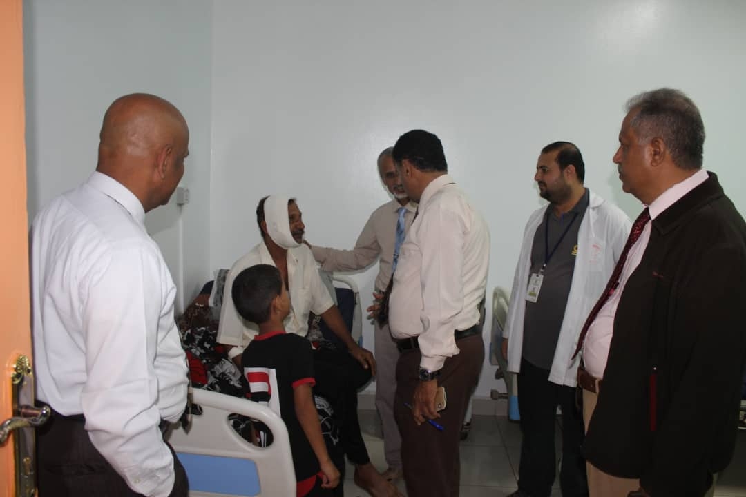 رافقه في الزيارة الدكتور عارف الداعري، مدير الدائرة الصحية للدعم والإسناد، والأخ وصفي علي أحمد، عضو القيادة المحلية للمجلس الانتقالي في مديرية المعلا والأخ الخضر الميسري ، مدير العلاقات العامة في الجمعية الوطنية.