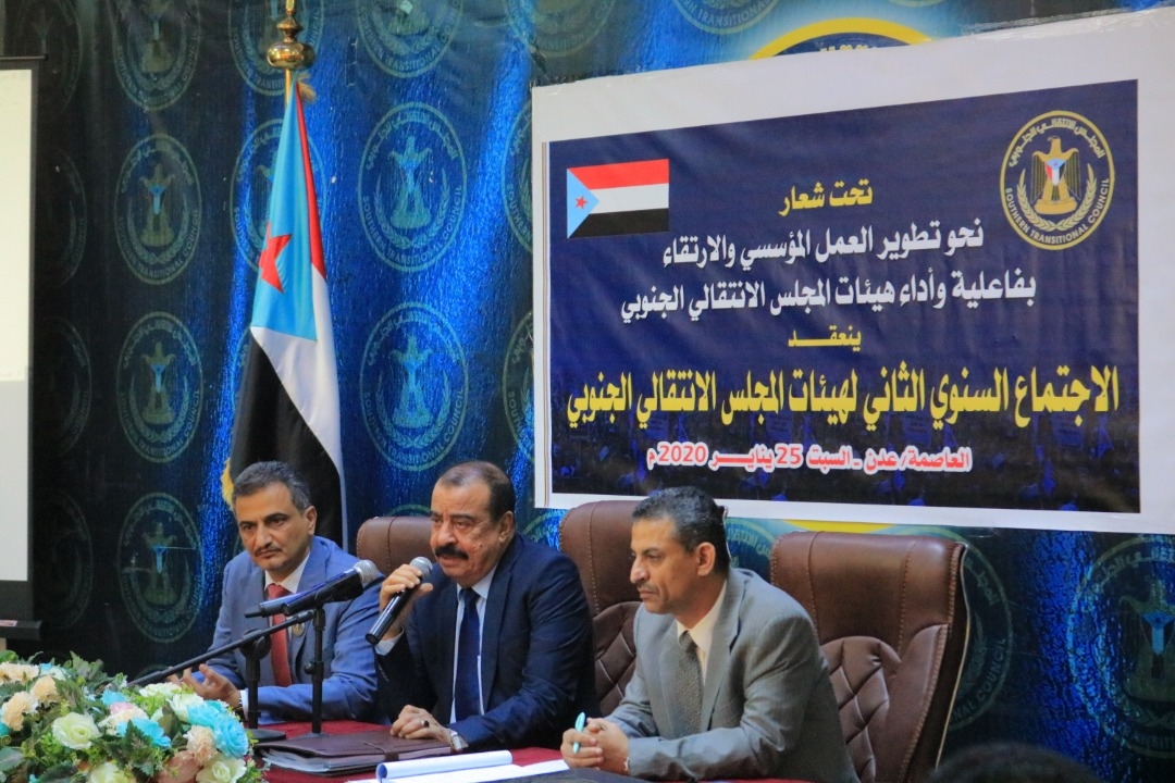 عقدت هيئات المجلس الانتقالي الجنوبي اليوم السبت اجتماعها السنوي الثاني تحت شعار " نحو تطوير العمل المؤسسي والارتقاء بفاعلية وأداء هيئات المجلس الانتقالي الجنوبي ".
