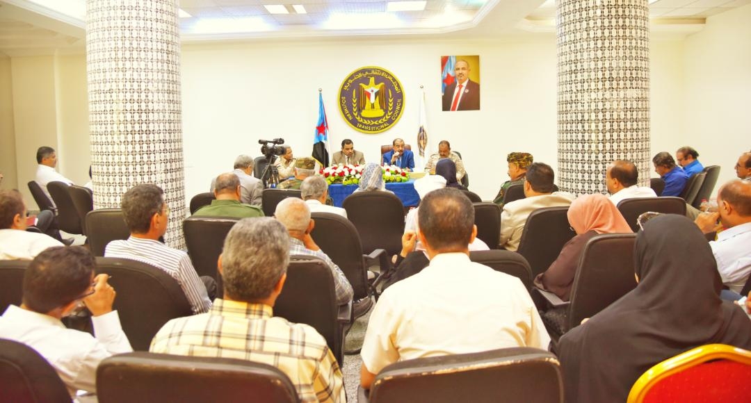وكُرّس الاجتماع، الذي حضره اللواء سالم السقطري، مساعد الأمين العام، واللواء فضل حسن، قائد المنطقة العسكرية الرابعة، واللواء محسن عسكر، مستشار رئيس المجلس الانتقالي للشؤون العسكرية، للوقوف أمام جُملة من القضايا الهامة المتعلقة بالتطورات على الساحتين السياسية والعسكرية.