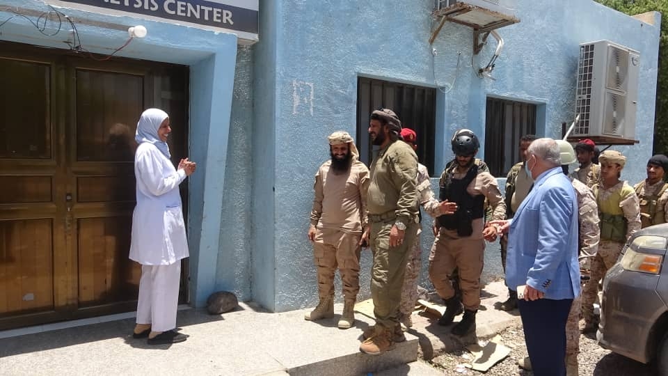عقب ذلك قام الوالي بزيارة لمستشفى الجمهورية بمديرية خورمكسر ، حيث التقى نائب مدير عام المستشفى، طارق مزيدة، وبحث معه الآليات والحلول الممكنة لمشكلة النظافة.