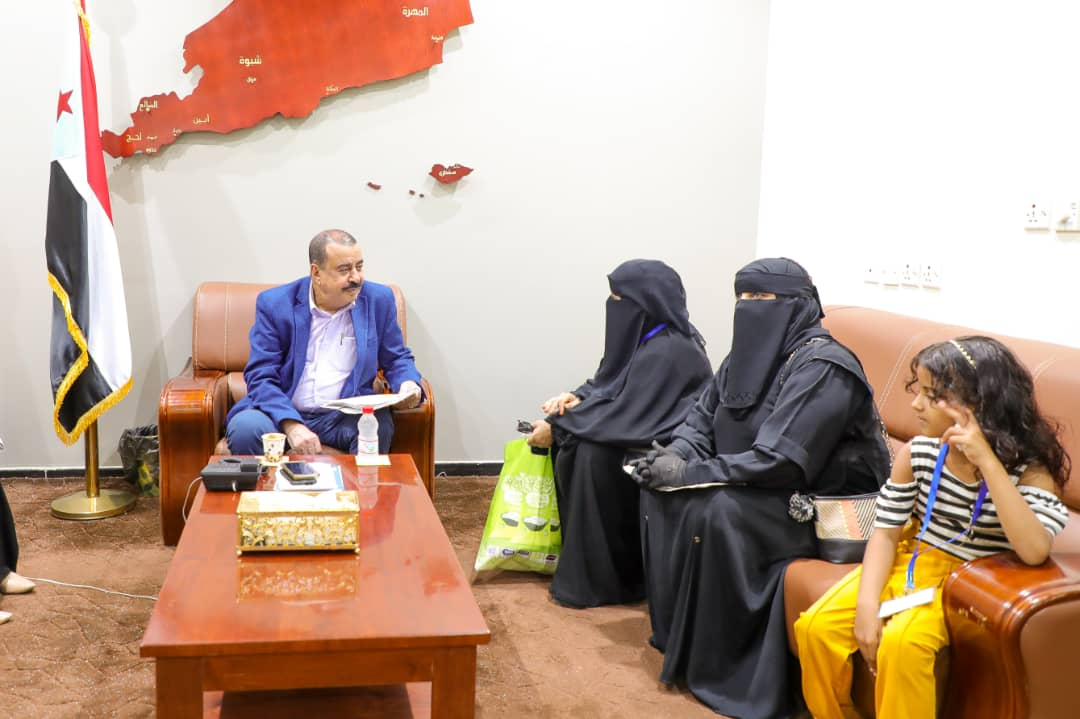 وفي مستهل اللقاء رحب اللواء بن بريك، بالطفلة رحاب ووالدتها، مشيدا بالوطنية العالية التي تتمتع بها الطفلة ذات التسعة أعوام وبعفويتها البريئة التي تدخل إلى القلب من دون أي استئذان، وهو ما يتميز به كل أبناء الجنوب.