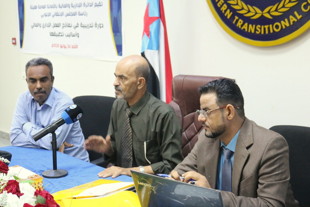 نظمت الدائرة الإدارية والمالية بالأمانة العامة لهيئة رئاسة المجلس الانتقالي الجنوبي اليوم الأحد بالعاصمة عدن، دورة تدريبية في نماذج العمل الإداري والمالي وأساليب تطبيقها بمشاركة مندوبين عن دوائر الأمانة العامة.