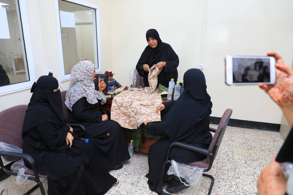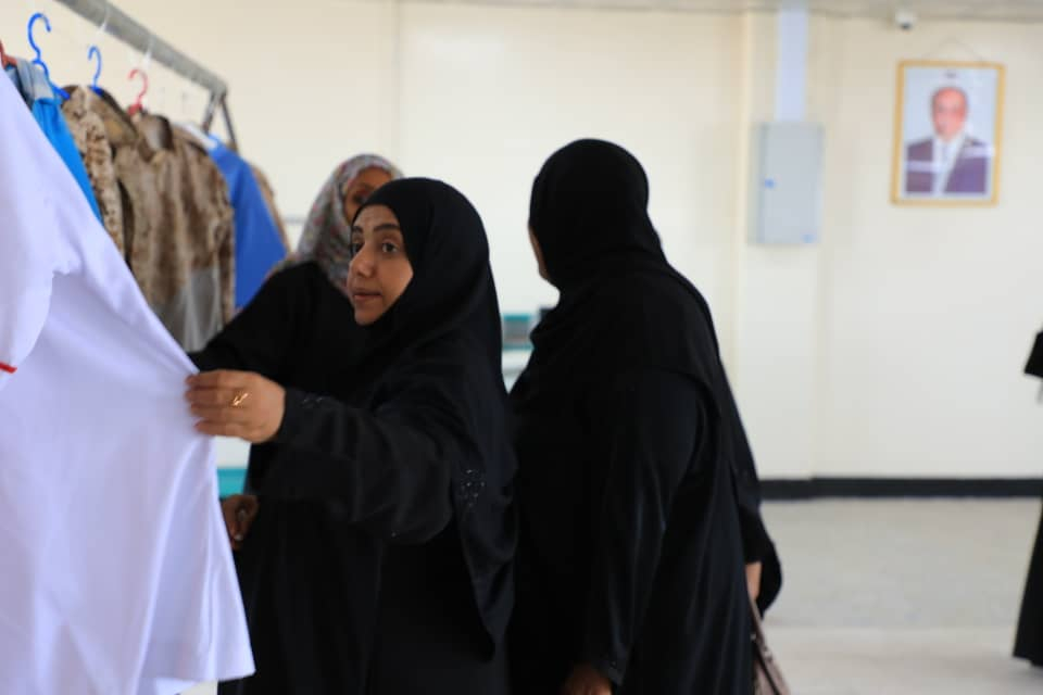والتقى الفريق التابع للدائرتين بمديرة المعمل جميلة احمد علي لصيصي واستمعوا منها إلى شرحٍ مفصلٍ عن أداء معمل الخياطة الذي يضم 70 موظفة .