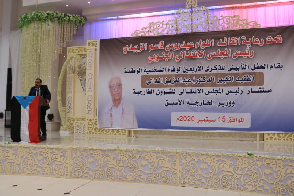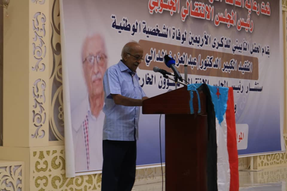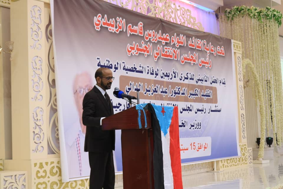 جاء ذلك في كلمة ألقاها في فعالية تأبين فقيد الوطن الدكتور عبدالعزيز، مستشار رئيس المجلس الانتقالي للشئون الخارجية ، وزير الخارجية الأسبق، والتي أقيمت اليوم الثلاثاء بالعاصمة عدن ، برعاية الرئيس القائد عيدروس قاسم الزُبيدي رئيس المجلس الانتقالي الجنوبي.