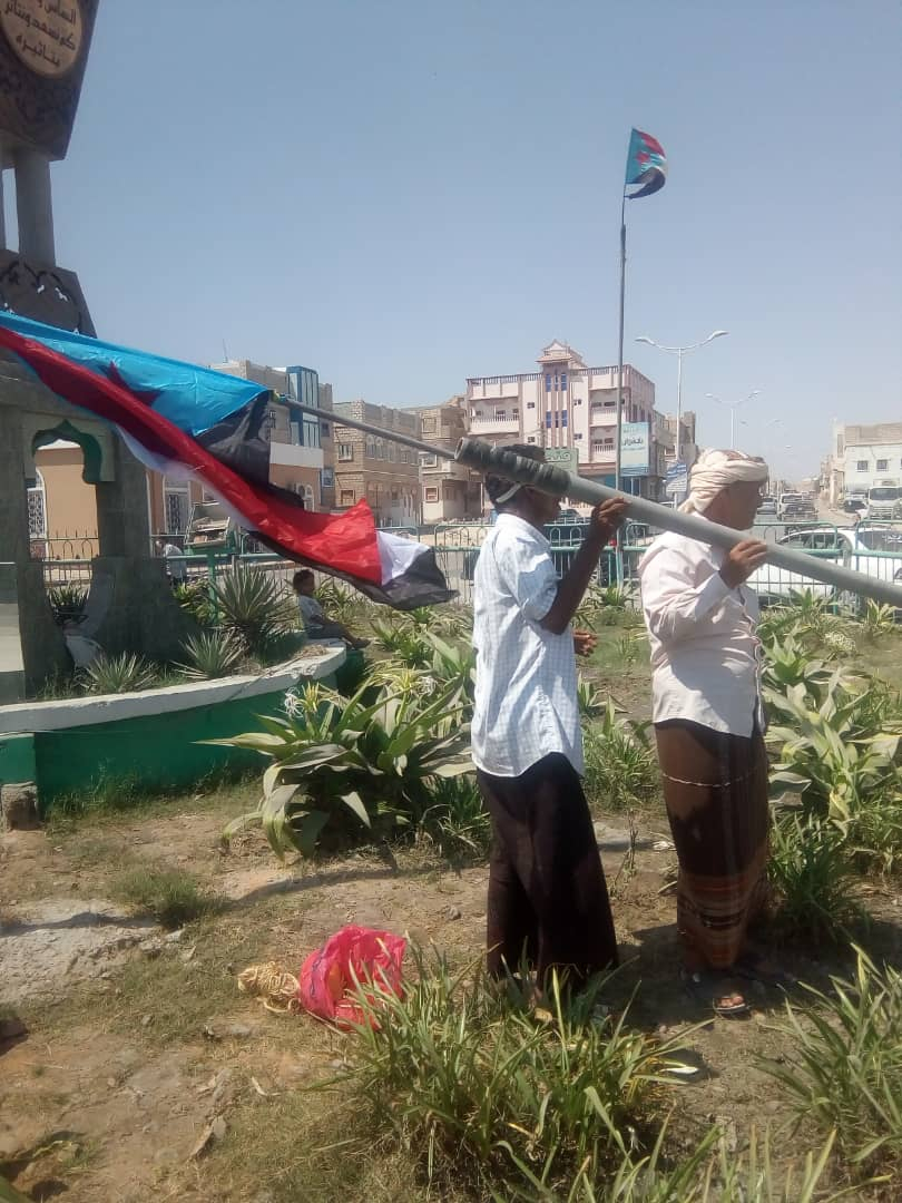 دشنت القيادة المحلية للمجلس الانتقالي الجنوبي بمدينة الشحر حملة رفع أعلام الجنوب على المباني الحكومية والأثرية والشوارع والجولات الرئيسية، بمناسبة الذكرى 57 لثورة 14 أكتوبر المجيدة .