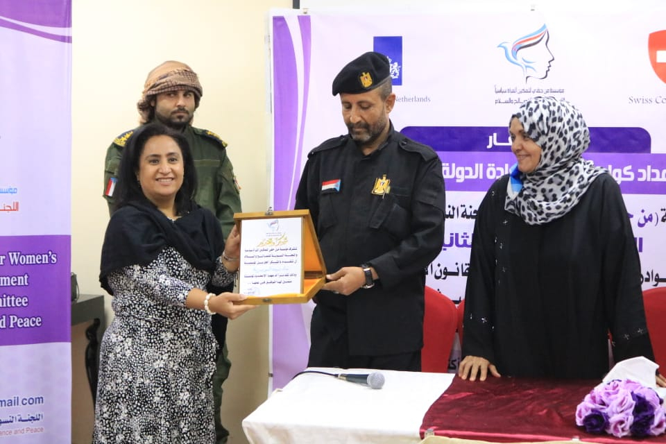 حضر اليوم الختامي للدورة الأستاذة اشتياق محمد سعد رئيسة دائرة المرأة والطفل في الأمانة العامة لهيئة رئاسة المجلس الانتقالي الجنوبي.