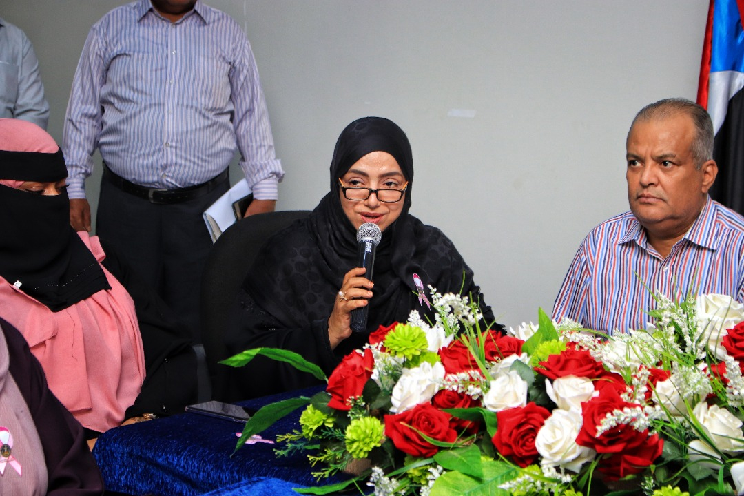 كما ألقت المحامية ذكرى معتوق رئيسة دائرة حقوق الإنسان في الأمانة العامة لهيئة رئاسة المجلس الانتقالي الجنوبي كلمة عبّرت فيها عن تقديرها لحرص قيادة المجلس على كل مايهم المرأة، مؤكدة أن المرأة هي الأم والزوجة والأخت والبنت، والتي من أجلها تم اختيار شهر أكتوبر والرمز له باللون الوردي للتوعية من خطورة هذا المرض ولرفع المعنويات في التعامل معه وسرعة الكشف عنه، مقدمة شكرها لقيادة المجلس لاهتمامها بهذا الجانب، وتمنياتها للمشاركات بالاستفادة من هذه الفعالية التوعوية.