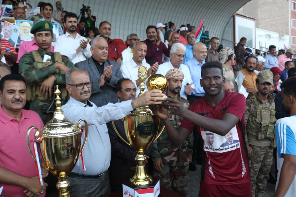 وفي الختام قام الأستاذ فضل محمد الجعدي مساعد الأمين العام لهيئة رئاسة المجلس الانتقالي بتسليم فريق مديرية المنصورة الفائز كأس البطولة، وتكريم الحكام وأفضل حارس ولاعب في البطولة.