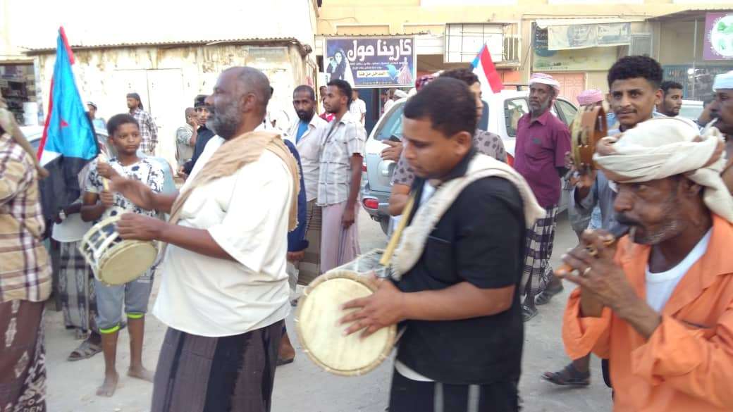 وقد حمل المشاركون أعلام دولة الجنوب وصور الرئيس القائد عيدروس قاسم الزُبيدي رئيس المجلس الانتقالي الجنوبي، مرددين الشعارات الثورية الحماسية وغيرها من الشعارات التي ألهبت حماس الجماهير.