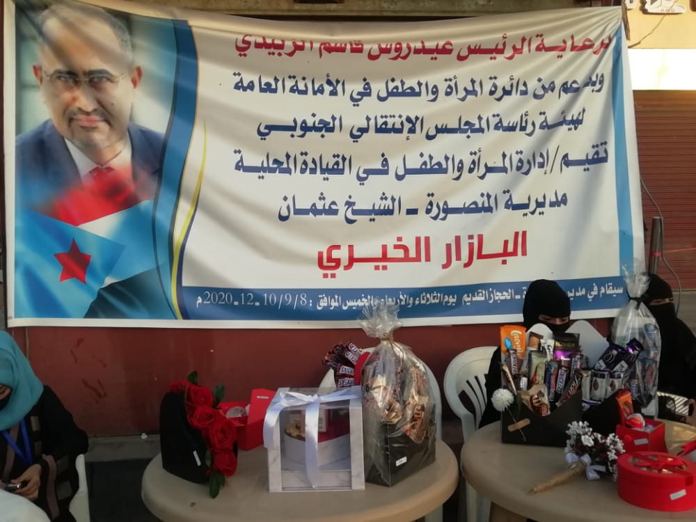 ختتمت إدارتا المرأة والطفل في القيادتين المحليتين للمجلس الانتقالي الجنوبي بمديريتي المنصورة والشيخ عثمان بالعاصمة عدن ،اليوم الخميس، البازار الخيري للأسر الفقيرة الذي أقيم برعاية الرئيس القائد عيدروس قاسم الزُبيدي رئيس المجلس الانتقالي الجنوبي، وتحت إشراف دائرة المرأة والطفل بالأمانة العامة لهيئة رئاسة المجلس .