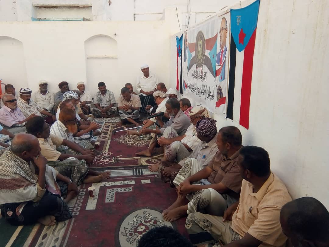 واستهل اللقاء بكلمة لرئيس الهيئة التنفيذية للقيادة المحلية للمجلس الانتقالي بالمديرية صلاح أحمد الكسادي، رحب فيها بالحاضرين.