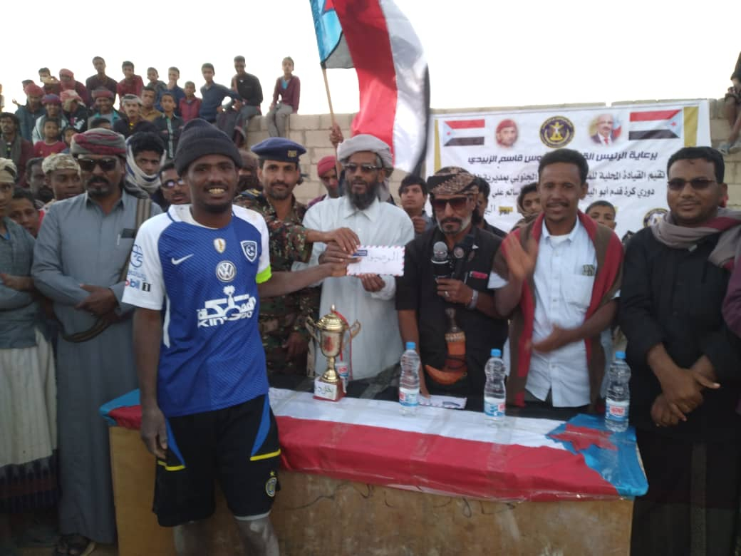 وفي ختام العرس الكروي قامت القيادة المحلية للمجلس الانتقالي الجنوبي بمديرية الضليعة، بتكريم فريق الشباب بالضليعة بكأس البطولة، وجائزة مالية، فيما حصل نادي الهلال بالنجيدين على جائزة الوصيف.
