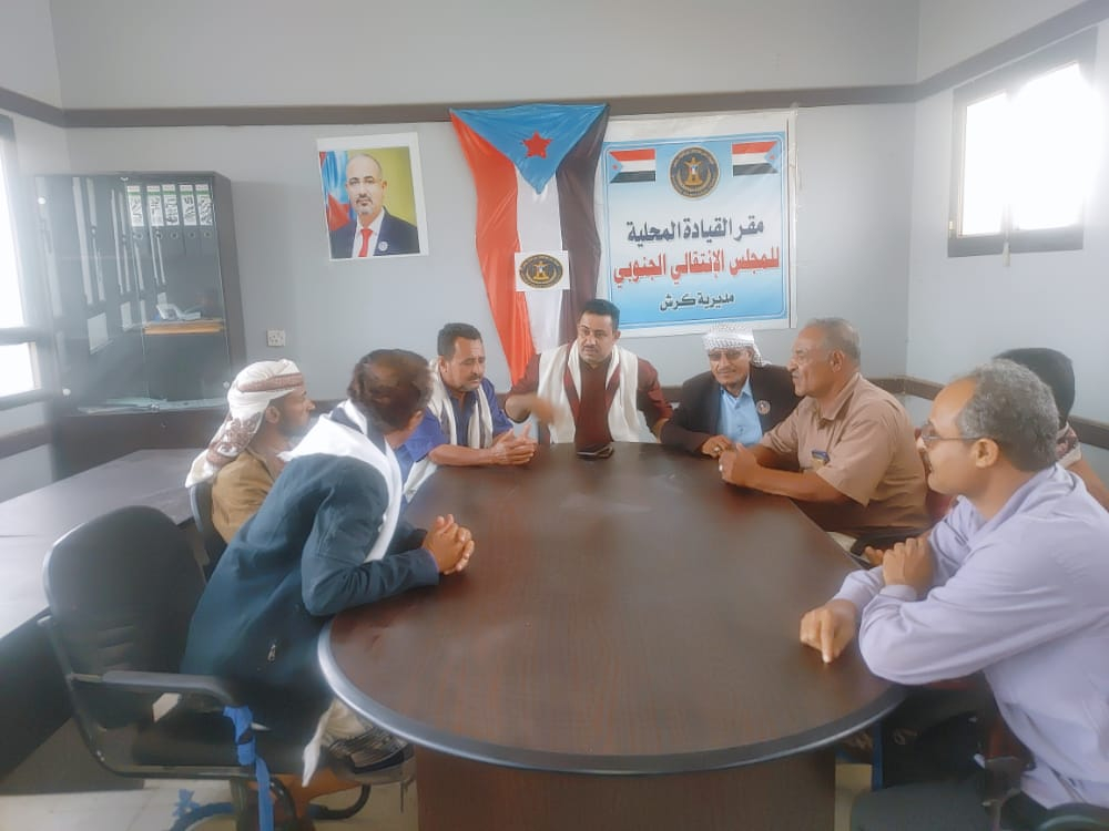 عقب ذلك عاد المحامي الشعيبي ومرافقوه، بمعية هارون مقبل الصمة الحميدي رئيس الهيئة التنفيذية للقيادة المحلية بمدرية كرش، وعماد غانم عضو انتقالي المحافظة، مدير عام المديرية، والعميد علي الكحلاني قائد الجبهة القتالية بكرش، لزيارة مقر القيادة المحلية للقيادة المحلية لانتقالي كرش، حيث عقد اجتماعاً مع قيادة انتقالي المديرية، وألقى فيه هارون الصمة، كلمة رحب من خلالها بالمحامي الشعيبي ومرافقيه، شاكراً لهم تفضلهم بالزيارة للمديرية في ظل الظروف الاستثنائية يمر بها وطننا الجنوب .
