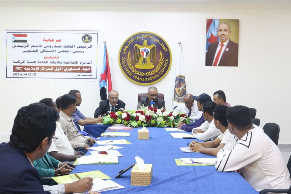دشن الأستاذ فضل محمد الجعدي نائب الأمين العام لهيئة رئاسة المجلس الانتقالي الجنوبي، والأستاذ علي الكثيري عضو هيئة الرئاسة، الناطق الرسمي للمجلس، نائب رئيس وحدة شؤون المفاوضات، اليوم السبت اللقاء التشاوري الأول للمراكز الإعلامية للعام 2021 الذي تنظمه الدائرة الإعلامية في الأمانة العامة في العاصمة عدن على مدى يومين.