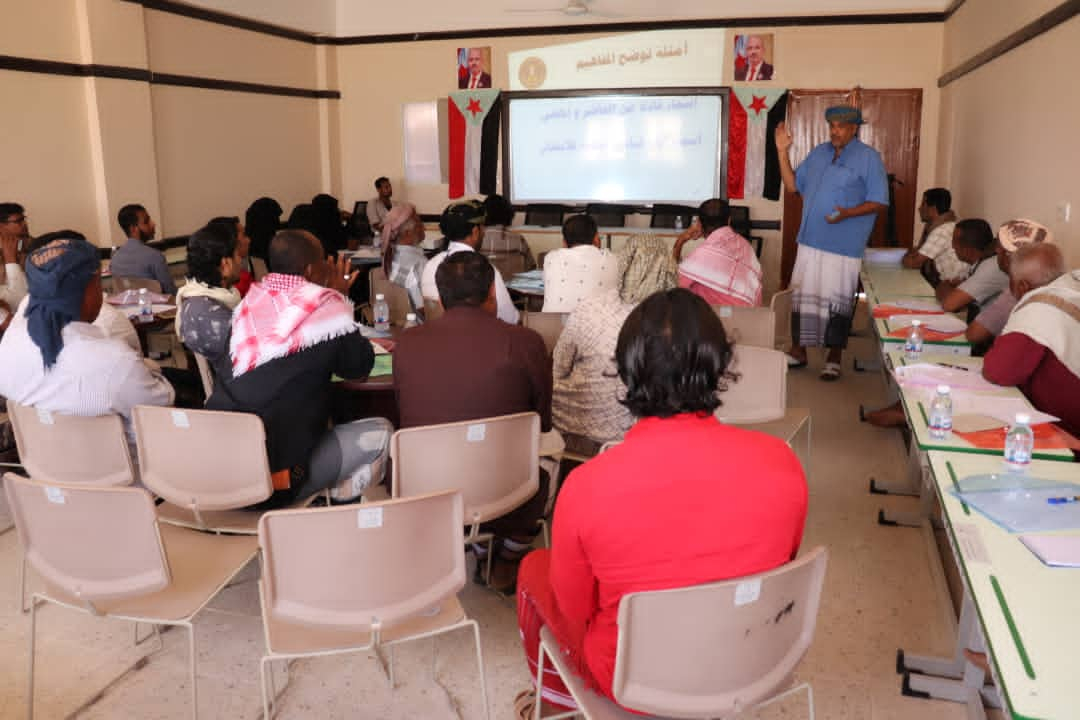 بينما نفذ الجلسة الثانية المهندس خليل عبودان، وشرح فيها المبادئ والأساليب الحديثة للعملية الإدارية وتطبيقاتها على مستوى الهيئات التنفيذية للقيادة المحلية لمجلس بالمحافظة والمديريات.