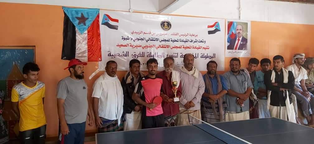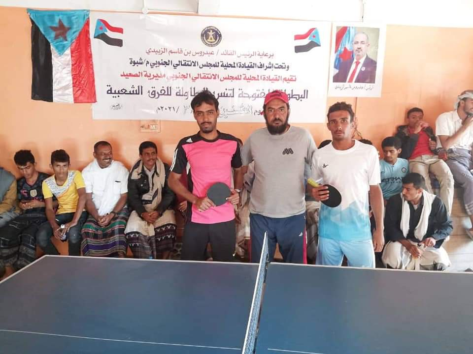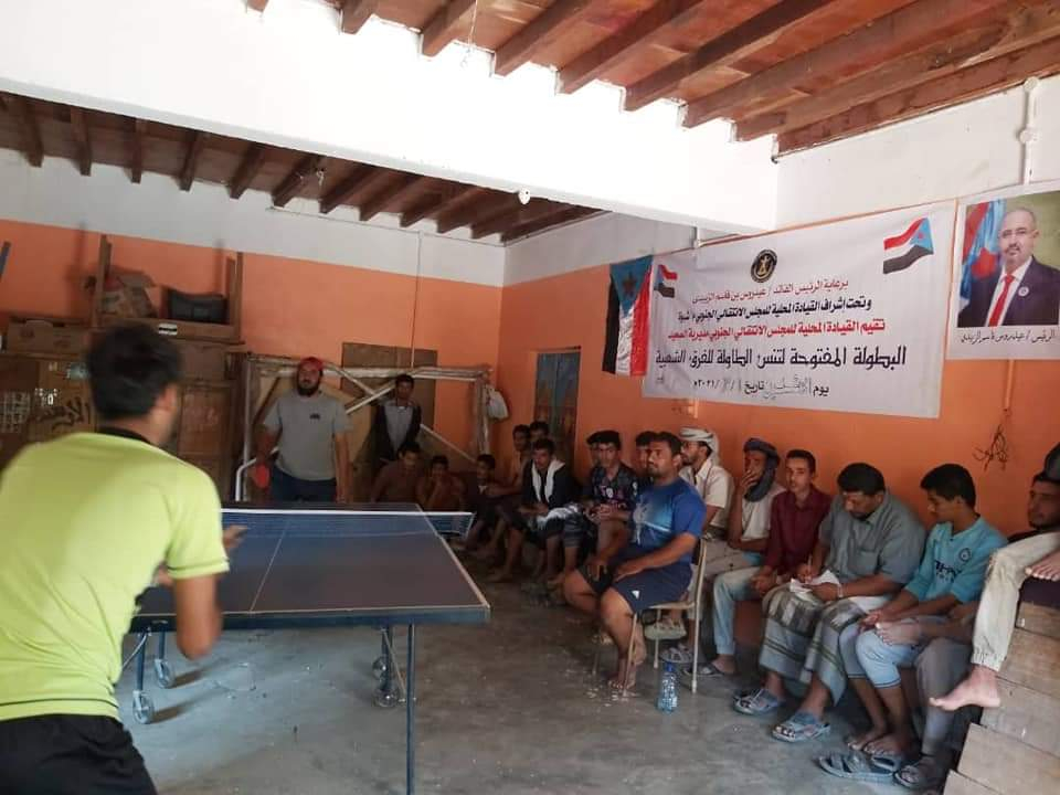 وأضاف:" اليوم ندشن برنامجنا الرياضي بقاعة الشهيد محمد جازع احمد ببطولة تنس الطاولة للفرق الشعبية بمنطقة الصعيد ووادي يشبم ، وبمشاركة الاتحاد الصعيد ، والاهلي الشعب، وصمود الوادي ، والرميان الواسطة، والمحضار الصعيد ،والأحرار جاحص ، وخلال اليومين المقلبين سنقيم نشاط بطولة الشطرنج للفرق الشعبية لمنطقة المصينعة ومقبلة والشرج".