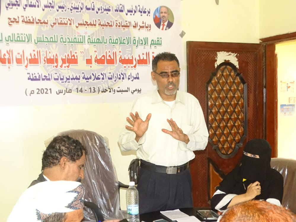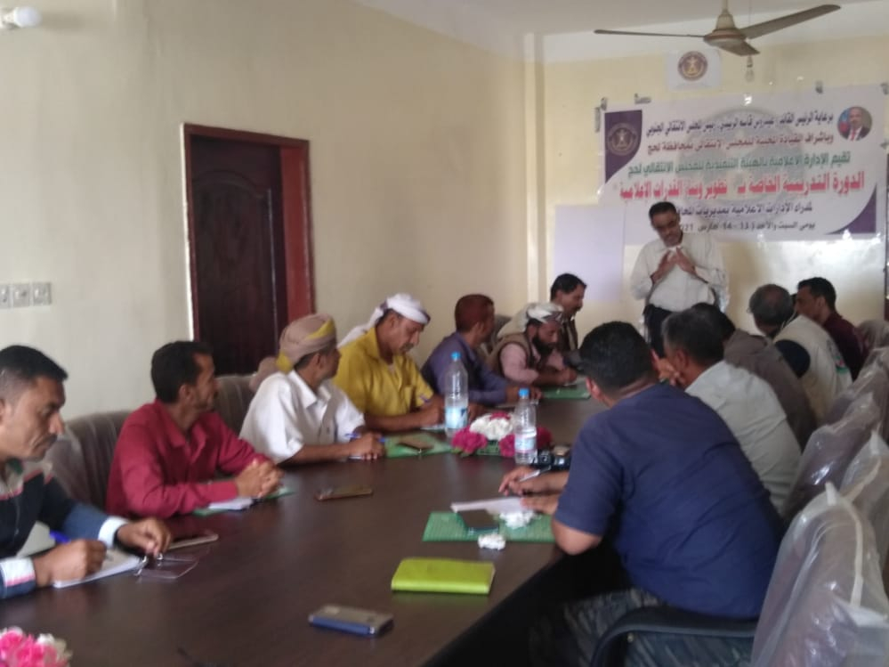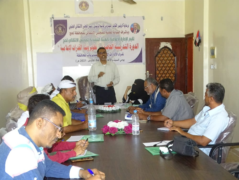 اختتمت الإدارة الإعلامية بتنفيذية انتقالي لحج دورة "تطوير وبناء القدرات الإعلامية" لمديري الإدارات بالمديريات، والتي أقيمت على مدى يومين.