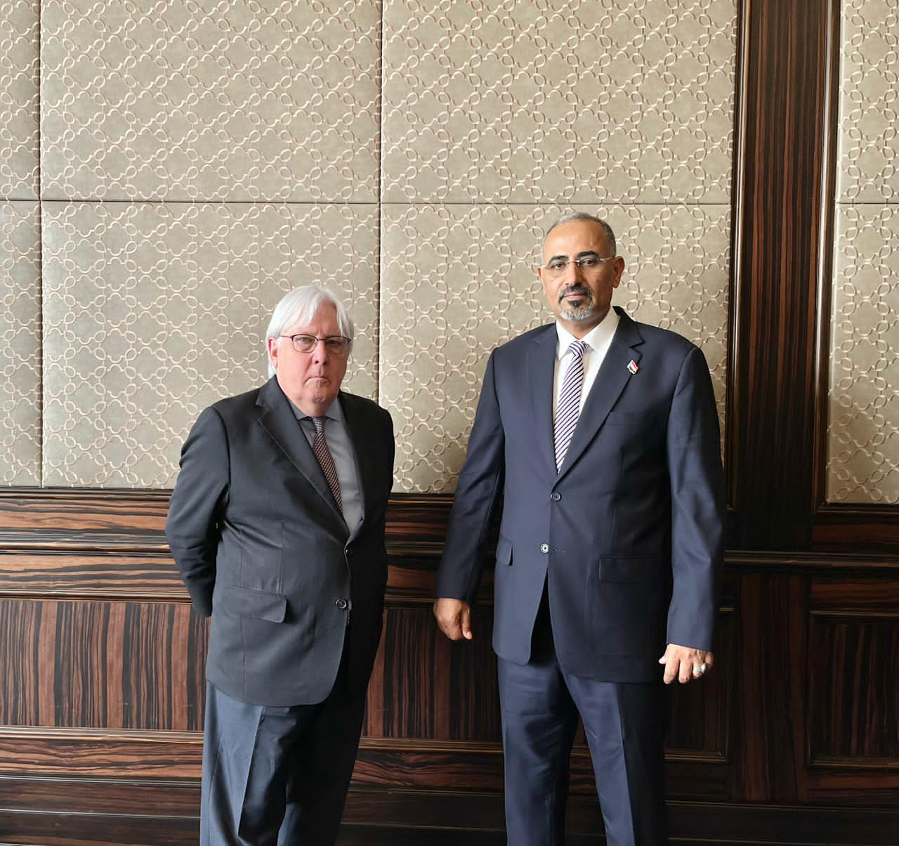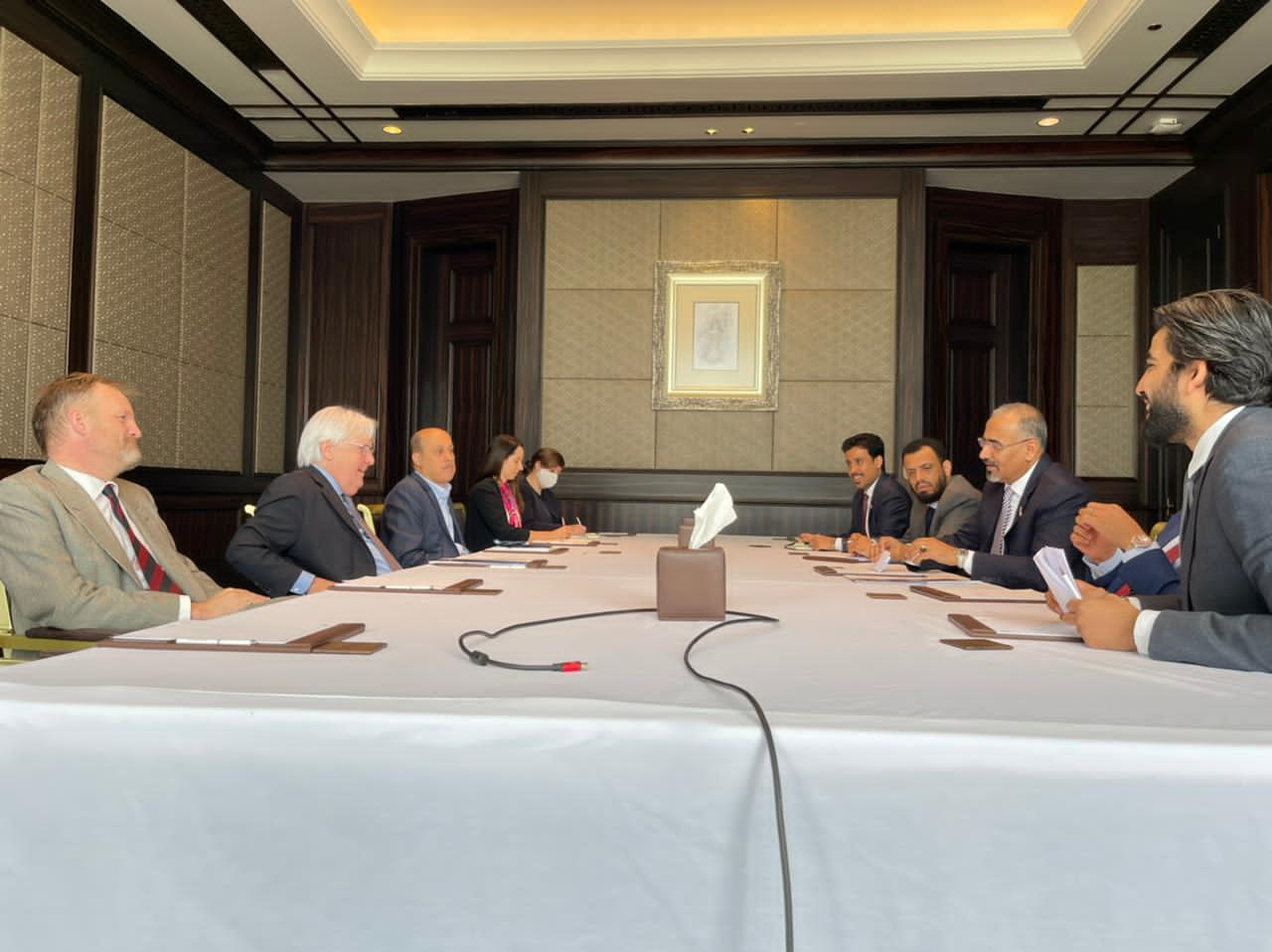 وأكد الرئيس الزُبيدي على دعم المجلس الانتقالي الجنوبي لجهود المبعوث الخاص، واستعداد المجلس للانخراط بشكل جاد في كافة مراحل العملية السياسية التي ترعاها الأمم المتحدة، مشدداً على أن حل قضية الجنوب وفق تطلعات الشعب الجنوبي المتمثلة في استعادة هويتهم واستقلال وبناء دولتهم، هو أساس لأي حلول مقترحة.