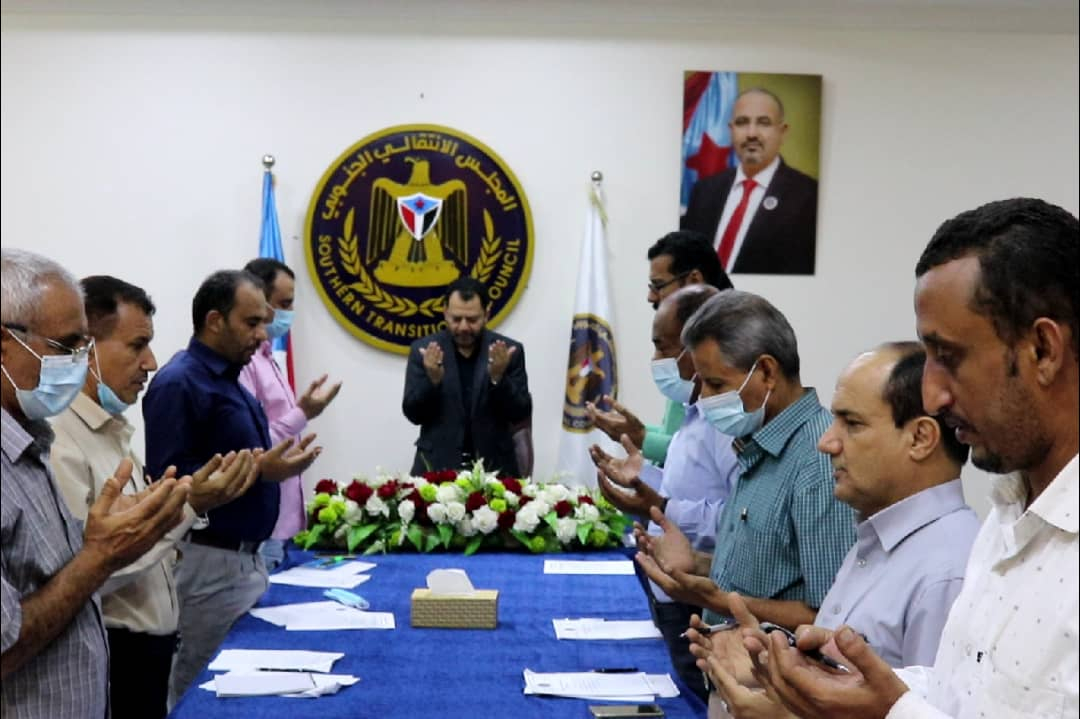وفي مستهل الاجتماع وقف الحاضرون دقيقة حداد لقراءة سورة الفاتحة على روح الفقيد المناضل أمين صالح محمد عضو هيئة رئاسة المجلس الانتقالي الجنوبي، الذي انتقل إلى جوار ربه اليوم الأثنين، سائلين المولى تعالى بأن يتغمد الفقيد بواسع رحمته، ويسكنه فسيح جناته.