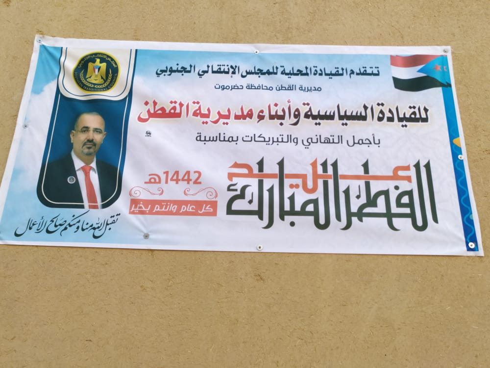 نظمت اللجنة المحلية بمركز العنين وضواحيها، التابعة للقيادة المحلية للمجلس الانتقالي الجنوبي بمديرية القطن، اليوم الجمعة، فعالية عيدية برقصات شعبية من الفلكلور الشعبي الحضرمي "رقصة القطني" التي تشتهر في مناطق حضرموت.