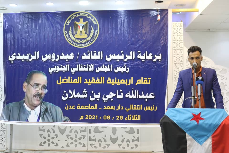 أحيّت القيادة المحلية للمجلس الانتقالي الجنوبي في العاصمة عدن، اليوم الثلاثاء، أربعينية فقيد الوطن المناضل عبدالله ناجي بن شملان الرئيس السابق للهيئة التنفيذية لانتقالي مديرية دار سعد، وذلك برعاية الرئيس القائد عيدروس الزُبيدي رئيس المجلس الانتقالي الجنوبي، وبحضور الأستاذ فضل محمد الجعدي نائب الأمين العام للأمانة العامة للمجلس الانتقالي .