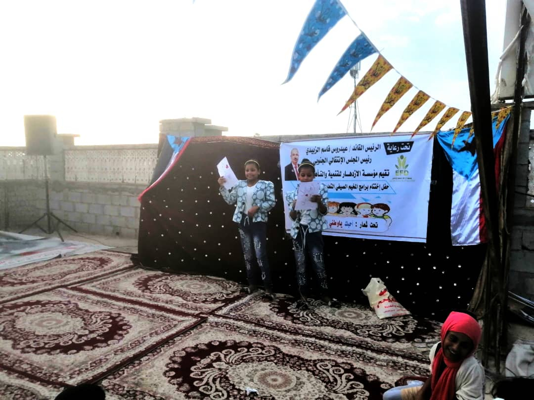 الجدير بالذكر أن المخيم الصيفي الذي أقامته مؤسسة الازدهار برعاية كريمة من الرئيس القائد عيدروس قاسم الزُبيدي، كان تحت شعار "أحبك ياوطني الجنوب"، واستهدف 100 طفلا من أبناء المديرية.