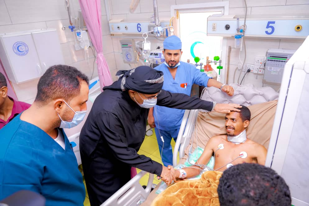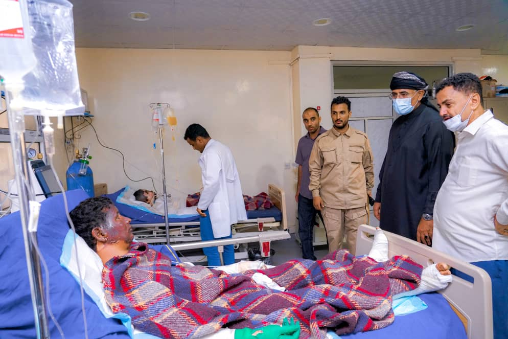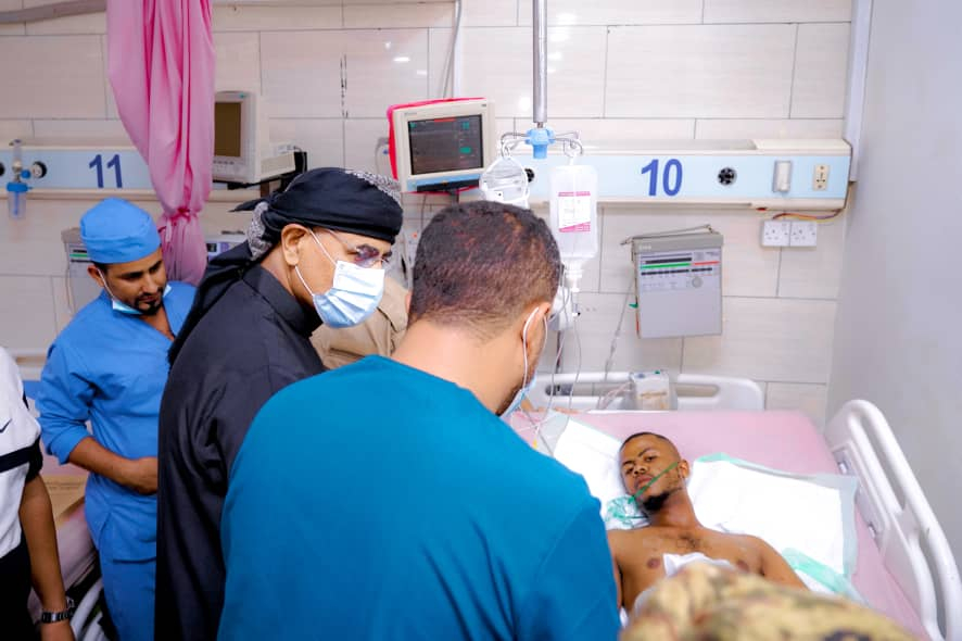 واستمع الرئيس الزُبيدي من الطواقم الطبية إلى شرحٍ مفصلٍ عن حالة كل جريح، مشدداً على ضرورة إيلائهم الاهتمام والعناية اللازمين، موجهاً بنقل الجرحى الذين تعرضوا لإصابات بالغة للعلاج في الخارج.