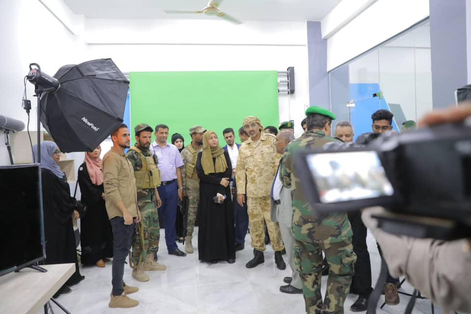 رافق الرئيس الزُبيدي في الافتتاح عضوا هيئة رئاسة المجلس الانتقالي الأستاذ علي الكثير الناطق الرسمي للمجلس الانتقالي الجنوبي رئيس الهيئة الوطنية للإعلام، و الدكتورة منى باشراحيل، والأستاذ مختار اليافعي نائب رئيس الهيئة الوطنية للاعلام الجنوبي، رئيس قطاع الإذاعة والتلفزيون، وأعضاء الهيئة الوطنية للإعلام الجنوبي.