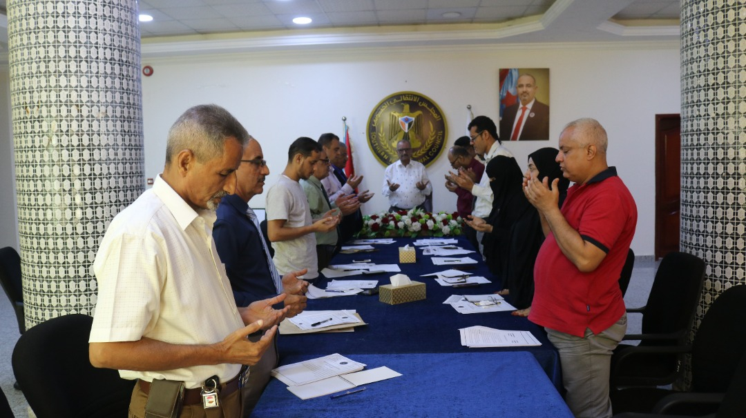 ووقف المجتمعون في مستهل الاجتماع، دقيقة حداد لقراءة سورة الفاتحة على شهداء الحادث الإجرامي الإرهابي، الذي استهدف موكب الأستاذ أحمد حامد لملس، الأمين العام للأمانة العامة لهيئة رئاسة المجلس الانتقالي الجنوبي، محافظ العاصمة عدن، واللواء سالم السقطري، نائب الأمين العام، وزير الزراعة والثروة السمكية، مطلع الأسبوع الجاري في العاصمة عدن، والذي سقط على على إثره عدد من الشهداء والجرحى، سائلين الله العلي القدير أن يتغمدهم بواسع الرحمة والمغفرة، وأن يمنّ على الجرحى بالشفاء العاجل.