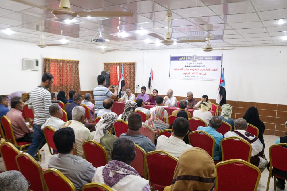 نظمت الدائرة السياسية في الأمانة العامة لهيئة رئاسة المجلس الانتقالي الجنوبي اليوم الأحد، في مدينة زنجبار عاصمة محافظة أبين لقاءً تشاوريًّا للوقوف أمام التحديات في محافظات الجنوب ، ترأسه الأستاذ فضل محمد الجعدي نائب الأمين العام .