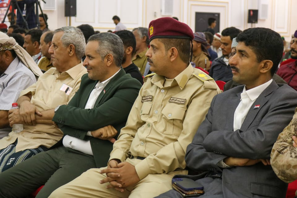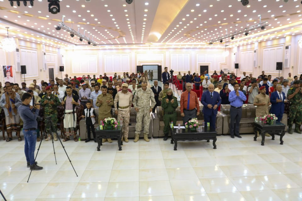 وفي الفعالية، التي حضرها الدكتور عبدالناصر الوالي - عضو هيئة رئاسة المجلس الانتقالي، وزير الخدمة المدنية في حكومة المناصفة، و اللواء محسن عسكر - مستشار رئيس المجلس الانتقالي للشؤون العسكرية، والأستاذ محمـد أحمد الشقي - رئيس تنفيذية انتقالي محافظة أبين، والأستاذ مختار اليافعي - نائب رئيس الهيئة الوطنية للإعلام الجنوبي، رئيس قطاع الإذاعة و التلفزيون بالهيئة، بالإضافة إلى قادة عسكريين وأمنيين وجمع من أسرة ورفقاء ومحبي الفقيد ، ألقى الأستاذ فضل محمـد الجعدي - نائب الأمين العام بالأمانة العامة لهيئة رئاسة المجلس، كلمة نقل في مستهلها تحايا الرئيس القائد عيدروس الزبيدي، رئيس المجلس الانتقالي، وتعازيه الصادقة لأسرة الفقيد مانع العمري، وذويه ورفاقه ومحبيه، لوفاة الفقيد.