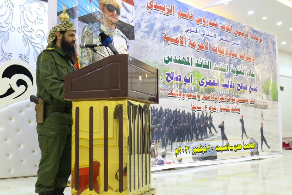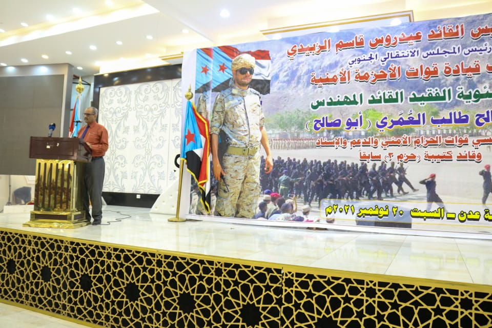 أحيّت قيادة قوات الأحزمة الأمنية، اليوم السبت، في العاصمة عدن، برعاية كريمة من الرئيس القائد عيدروس قاسم الزُبيدي - رئيس المجلس الانتقالي الجنوبي، مئوية الفقيد القائد المهندس مانع صالح العمري - قائد كتيبة حزم ٣ سابقاً، وأحد مؤسسي قوات الحزام الأمني والدعم والإسناد.