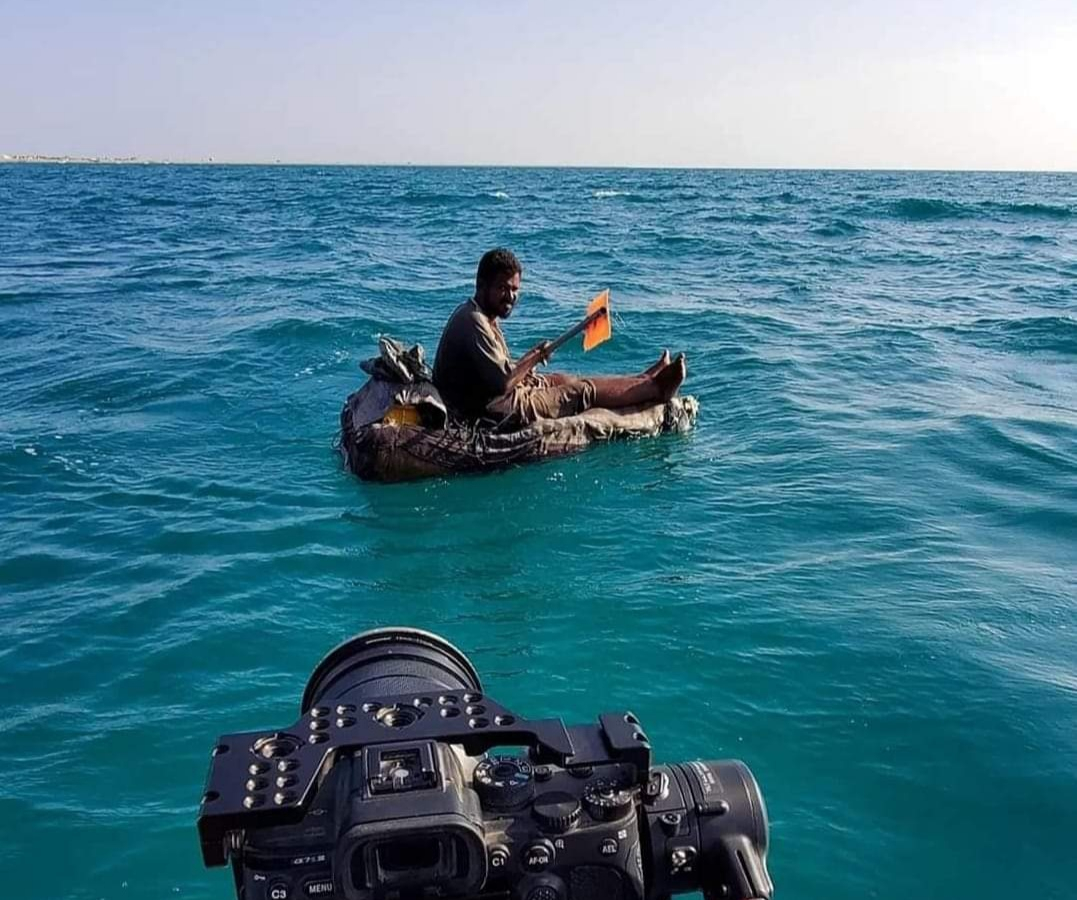 وكانت صورة الصياد العدني قد انتشرت على نطاق واسع في منصات التواصل الاجتماعي، بعد أن خاطر بنفسه على متن هذا القارب بدائي الصنع لكسب لقمة عيش لأولاده رغم اصابته في إحدى قدميه.