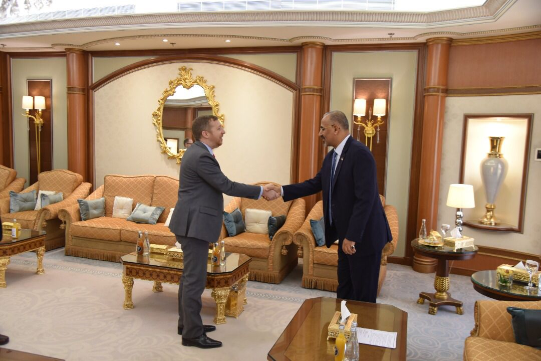وجدد السيد كريستوفر دويتش في لقائه بالرئيس القائد تأكيده دعم بلاده لاستكمال تنفيذ اتفاق الرياض ومساندتها لجهود حكومة المناصفة الرامية لإنعاش الوضع الاقتصادي وإصلاح المؤسسات الاقتصادية بما يمكنها من الإيفاء بالتزاماتها للمواطنين.