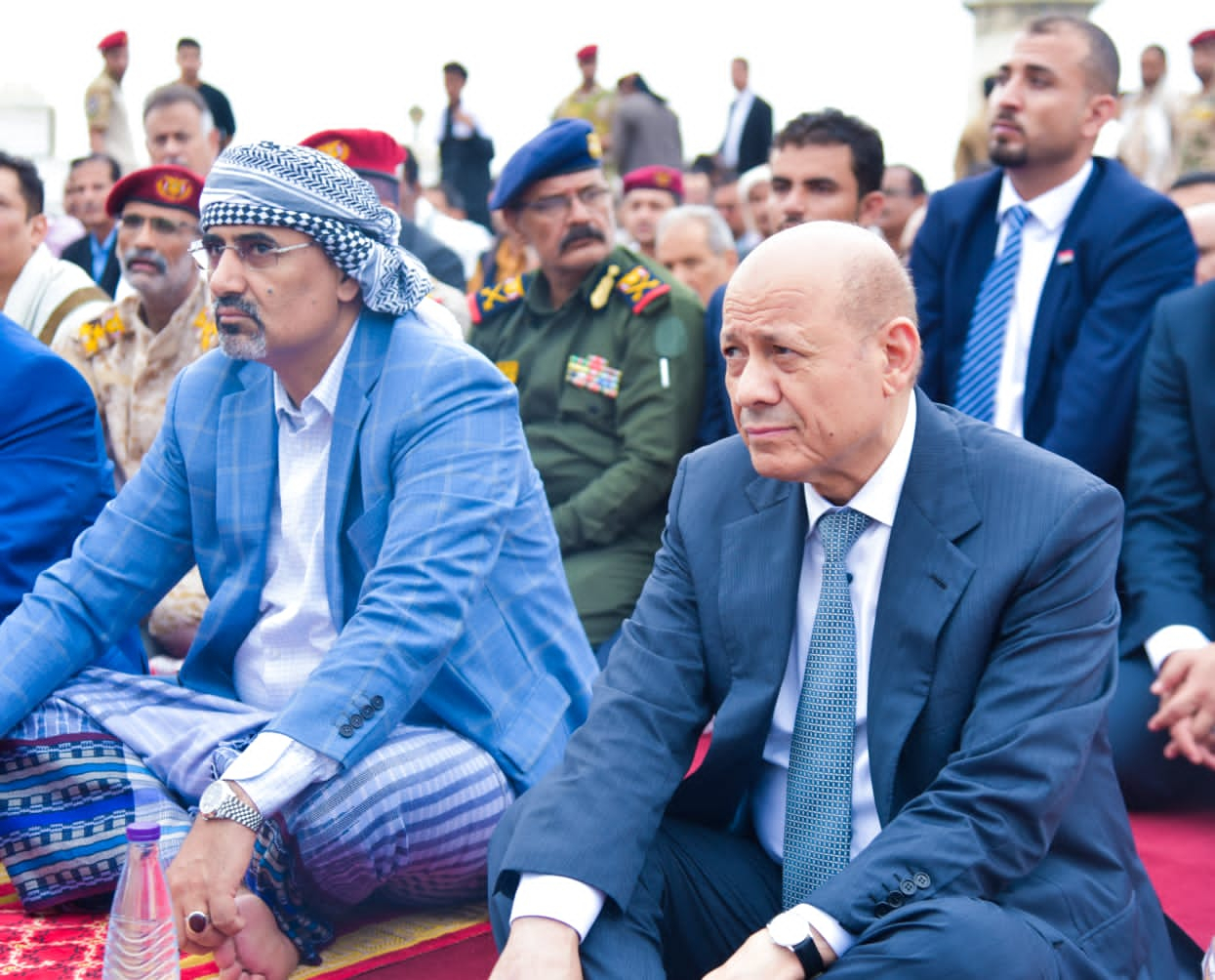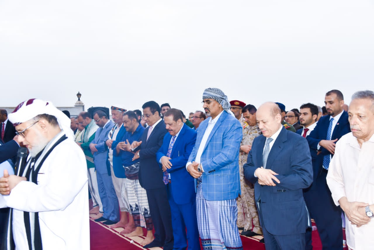 أدّى الرئيس القائد عيدروس قاسم الزُبيدي رئيس المجلس الانتقالي الجنوبي، نائب رئيس مجلس القيادة الرئاسي، اليوم السبت، صلاة عيد الأضحى المبارك، بمعية الدكتور رشاد محمد العليمي رئيس مجلس القيادة الرئاسي بالقصر الرئاسي بمعاشيق في العاصمة عدن.