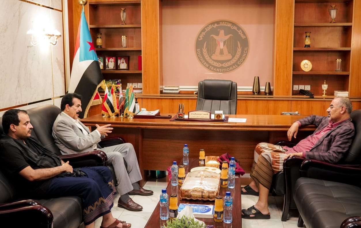 التقى الرئيس القائد عيدروس قاسم الزُبيدي رئيس المجلس الانتقالي الجنوبي، نائب رئيس مجلس القيادة الرئاسي، في مكتبه بمقر المجلس بالعاصمة عدن، مساء اليوم الخميس، الشيخ حسين العجّي العواضي عضو هيئة التشاور والمصالحة، محافظ محافظة الجوف الأسبق.