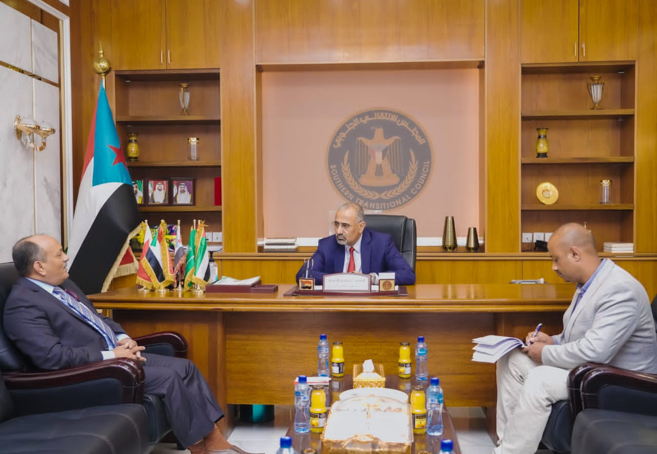التقى الرئيس القائد عيدروس قاسم الزُبيدي رئيس المجلس الانتقالي الجنوبي، نائب رئيس مجلس القيادة الرئاسي بمكتبه بمقر المجلس بالعاصمة عدن اليوم الأحد نائب وزير الصناعة والتجارة في حكومة المناصفة سالم محمد الوالي.