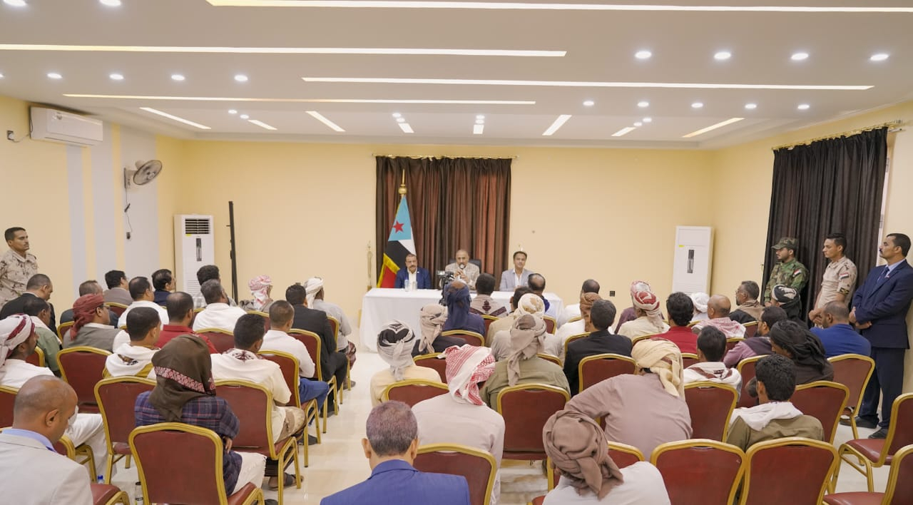 واستمع الرئيس الزُبيدي بعدها، من بعض المقادمة والمناصب الحاضرين، إلى شرحٍ موجزٍ عن مجمل الأوضاع التي تشهدها محافظة حضرموت عامة، ومديريات الوادي على وجه الخصوص، بالإضافة إلى جُملة القضايا والمطالب، والمشكلات والهموم التي يواجهها أبناء المحافظة والسُبل الكفيلة بحلها، حيث أكد الرئيس الزُبيدي أن ما تم طرحه سيكون محط اهتمام القيادة، واعدا الحاضرين بزيارة حضرموت خلال الفترة القريبة القادمة للوقوف عن قرب على ما يواجهه أبناء المحافظة من مشكلات والعمل على حلها.