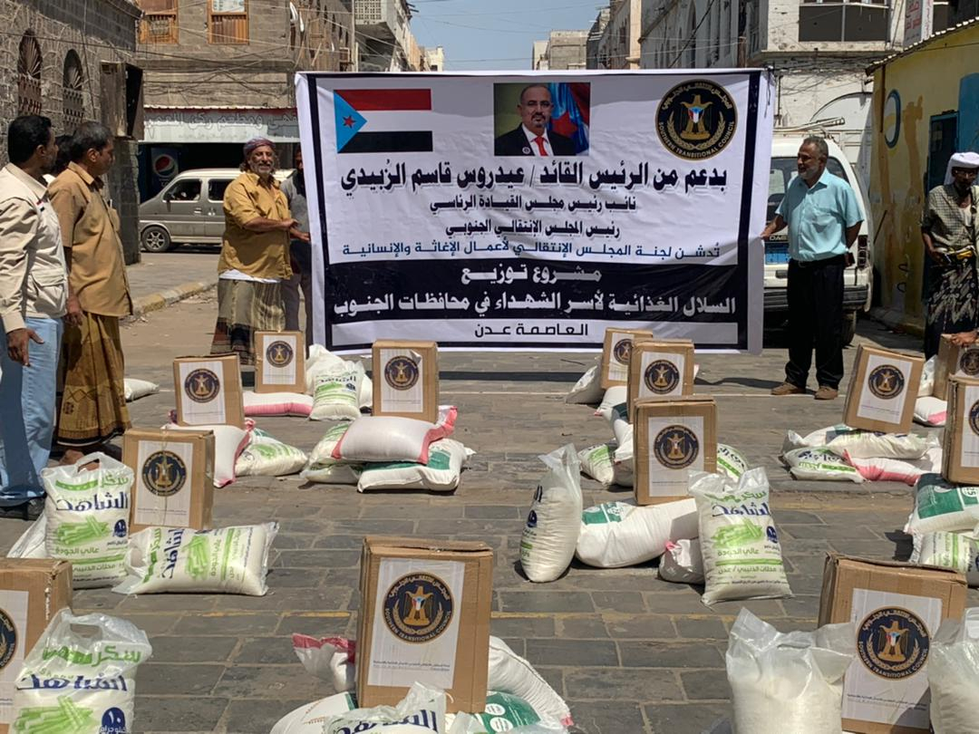 دشنت القيادة المحلية للمجلس الانتقالي الجنوبي في العاصمة عدن، اليوم الثلاثاء، عملية توزيع السلال الغذائية على أسر شهداء الجنوب في عموم مديريات العاصمة، برعاية ودعم الرئيس القائد عيدروس بن قاسم الزُبيدي، رئيس المجلس الانتقالي الجنوبي.
