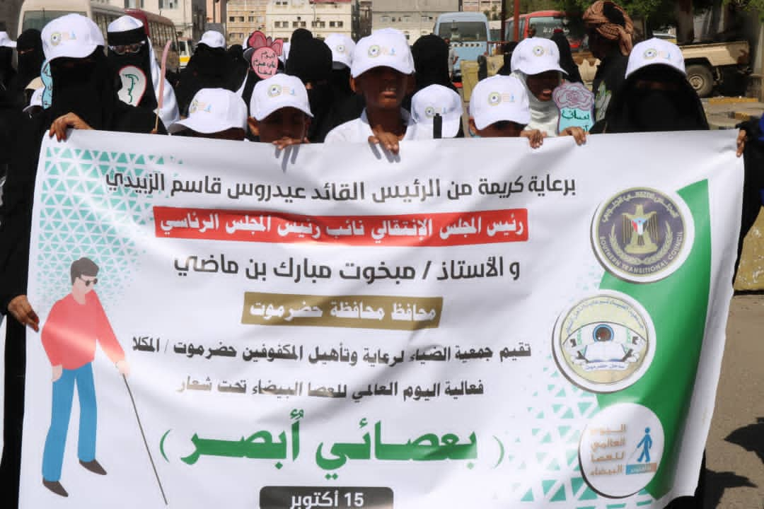 نظمت جمعية "الضياء" لرعاية وتأهيل المكفوفين بمدينة المكلا، اليوم الاثنين، فعالية احتفالية بمناسبة اليوم العالمي للعصا البيضاء، برعاية كريمة من الرئيس القائد عيدروس الزُبيدي رئيس المجلس الانتقالي الجنوبي، نائب رئيس مجلس القيادة الرئاسي.