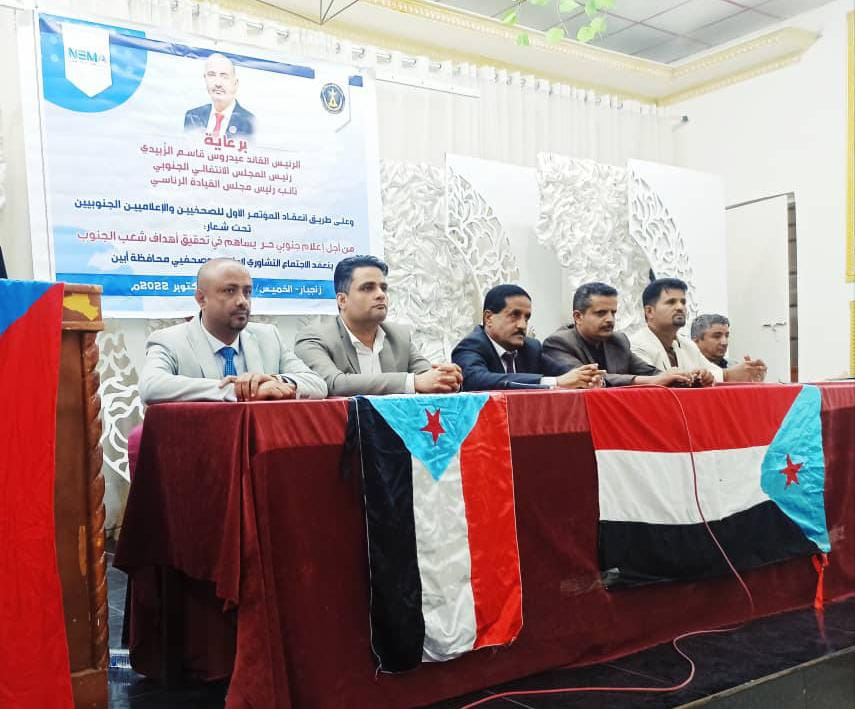 عقد، اليوم الخميس في محافظة أبين اللقاء التشاوري للإعلاميين والصحفيين في محافظة أبين، على طريق التحضير للمؤتمر الأول للصحفيين والإعلاميين الجنوبيين، تحت شعار "من أجل إعلام جنوبي حر يساهم في تحقيق أهداف شعب الجنوب" وبرعاية الرئيس القائد عيدروس الزُبيدي، رئيس المجلس الانتقالي الجنوبي، نائب رئيس مجلس القيادة الرئاسي.