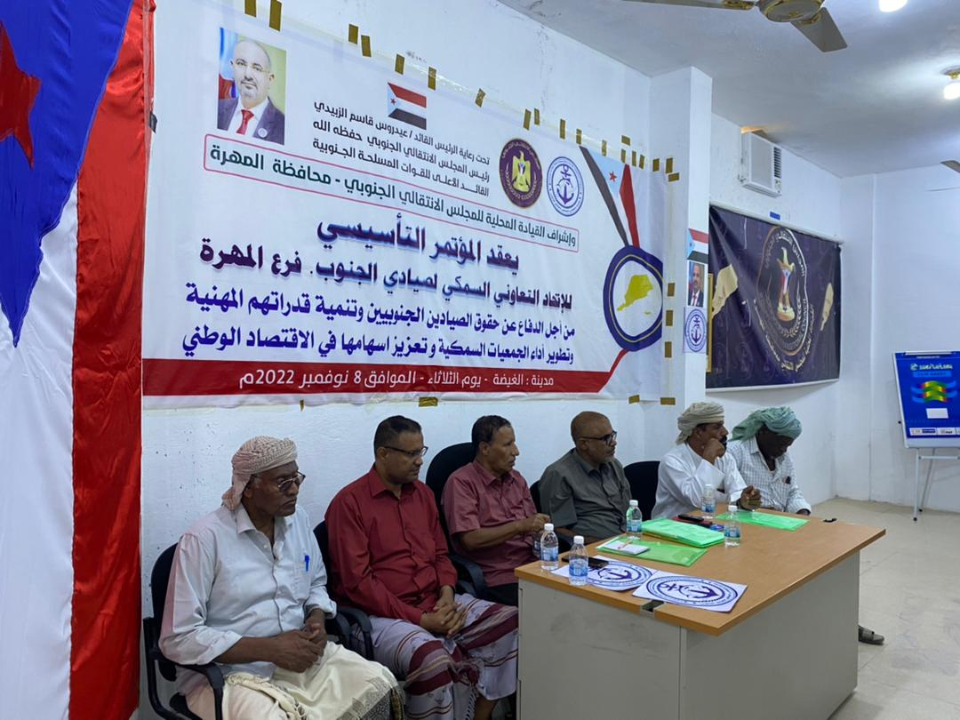 عقد، اليوم الثلاثاء، المؤتمر التأسيسي لفرع الاتحاد التعاوني السمكي لصيادي الجنوب في محافظة المهرة تحت شعار "من أجل الدفاع عن حقوق الصيادين الجنوبيين وتنمية قدراتهم المهنية وتطوير أداء الجمعيات السمكية وتعزيز اسهامها في الاقتصاد الوطني"، برعاية الرئيس القائد عيدروس الزُبيدي رئيس المجلس الانتقالي الجنوبي.