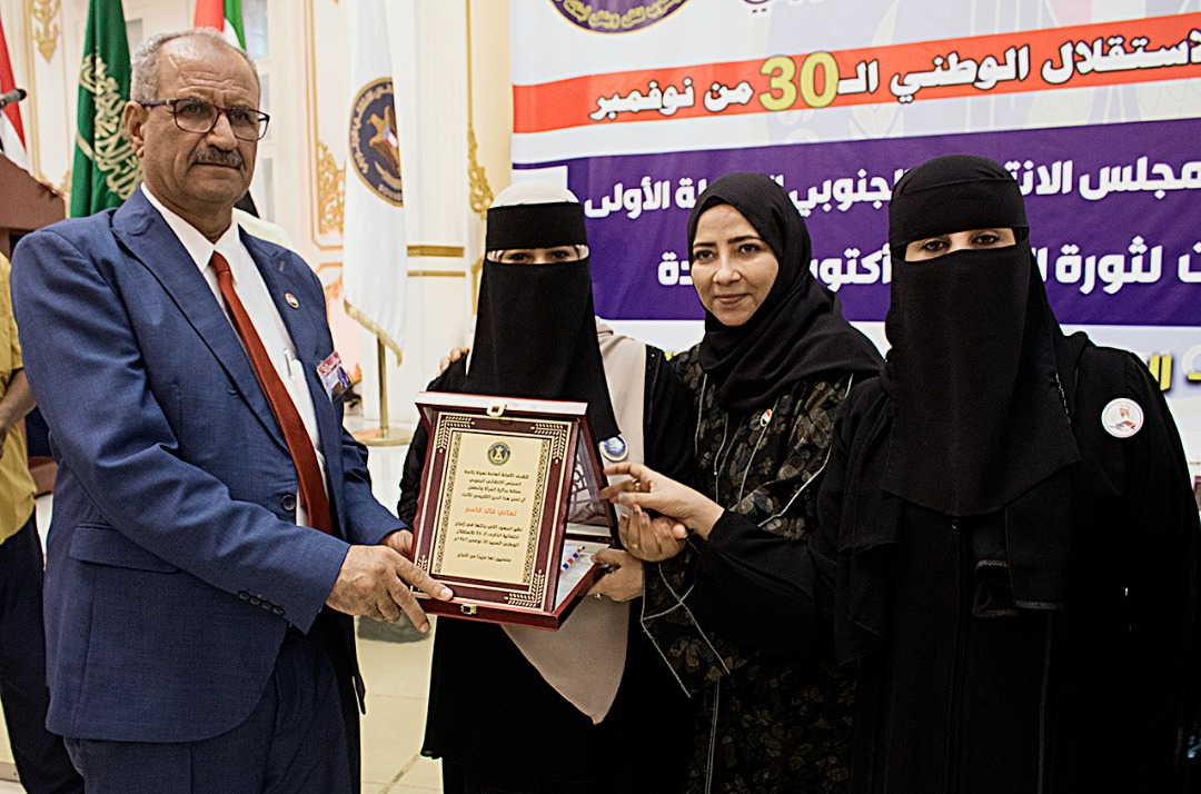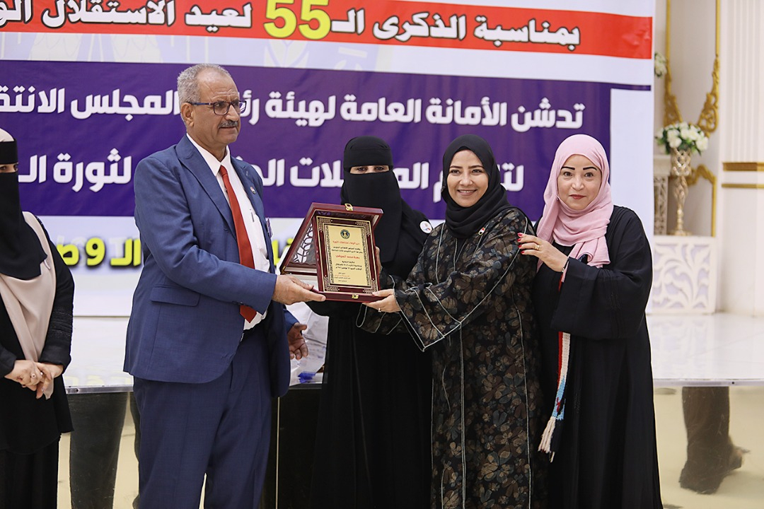 دشنت الأمانة العامة لهيئة رئاسة المجلس الانتقالي الجنوبي، اليوم الاثنين، في العاصمة عدن، المرحلة الأولى لتكريم المناضلات الجنوبيات لثورة الـ14 من أكتوبر المجيدة، بمناسبة الذكرى الـ55 لعيد الاستقلال الـ30 من نوفمبر، برعاية كريمة من الرئيس القائد عيدروس الزُبيدي، رئيس المجلس الانتقالي.