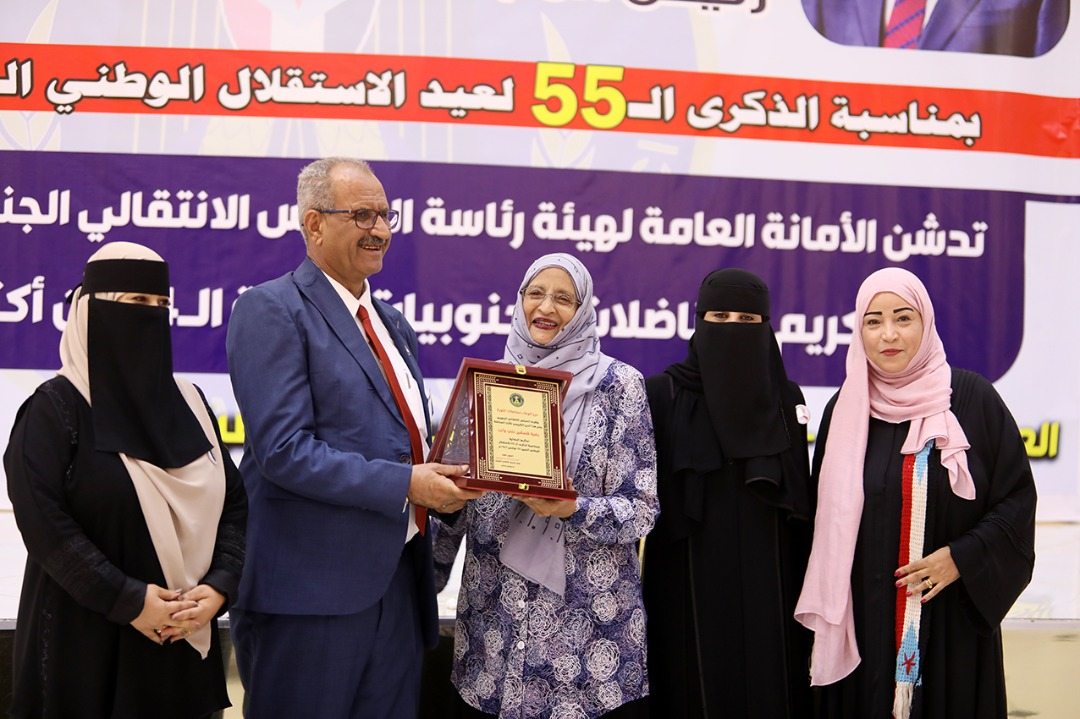 وأشار الأستاذ الجعدي، إلى أنه من دواعي سرور الأمانة العامة تدشين المرحلة الأولى لتكريم المناضلات الجنوبيات إبان الاستعمار البريطاني، الذي يتزامن مع احتفالات شعب الجنوب بالذكرى الـ55 بعيد الاستقلال الوطني المجيد، وعيد اتحاد دولة الإمارات العربية الشقيقة ويوم شهيدها، وأكد أهمية تعزيز دور المرأة ومنحها كل المميزات التي تستحقها، معلناً أنه سيتم إصدار كتاب يحوي أبرز أدوار المرأة الجنوبية ومسيرتها النضالية.