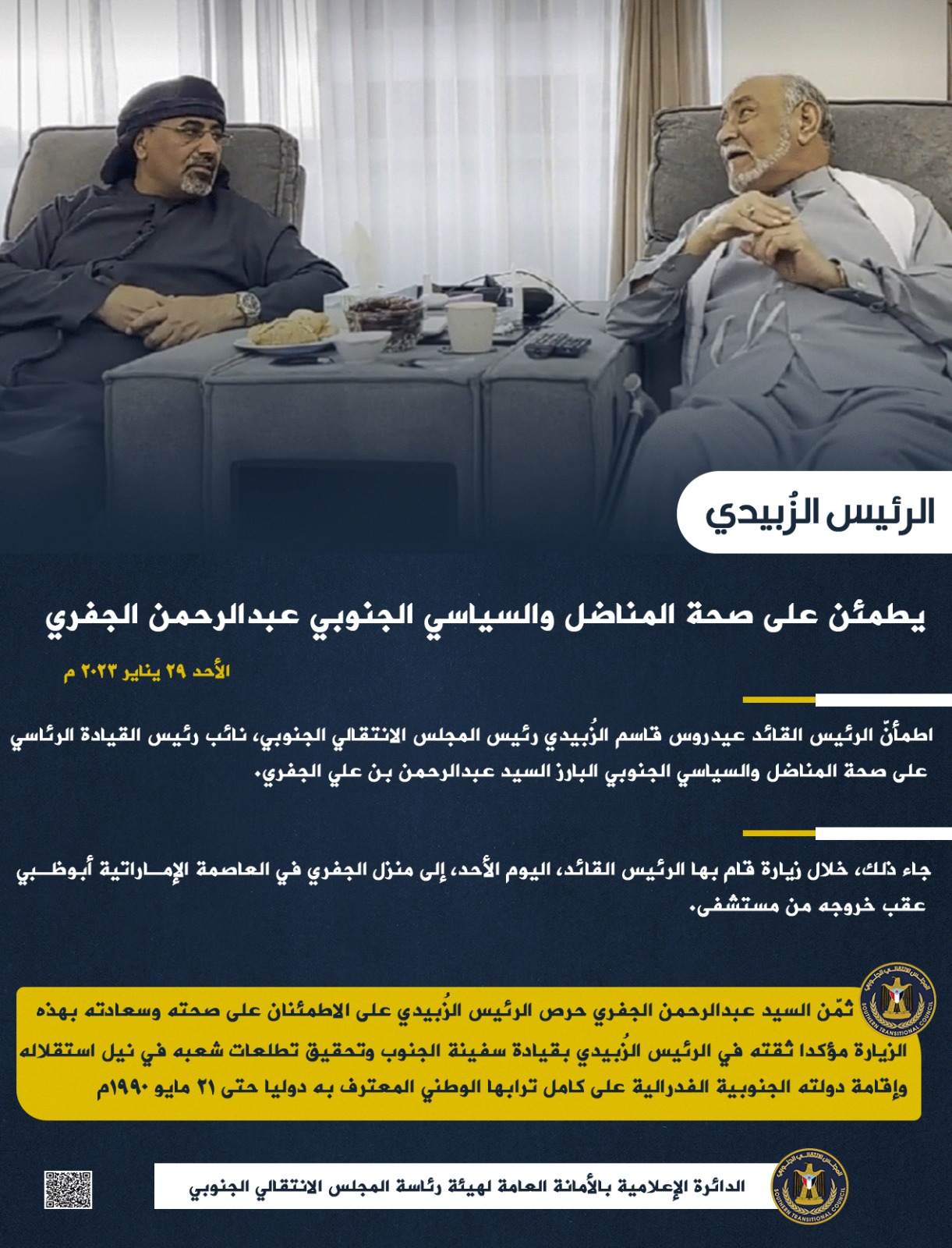 الرئيس الزُبيدي يطمئن على صحة المناضل والسياسي الجنوبي عبدالرحمن الجفري