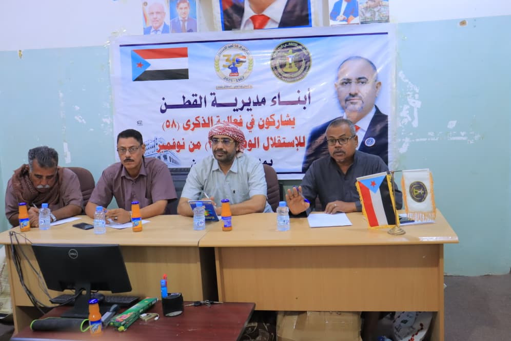 اطلع رئيس الهيئة التنفيذية المساعدة للمجلس الانتقالي الجنوبي لشؤون مديريات وادي وصحراء حضرموت، محمد عبدالملك الزبيدي، اليوم الأربعاء، على ترتيبات وتحضيرات القيادة المحلية لانتقالي القطن، للمشاركة بالفعالية الكبرى المزمع إقامتها في مدينة سيئون، بمناسبة الذكرى الـ58 لعيد الاستقلال الوطني 30 نوفمبر.